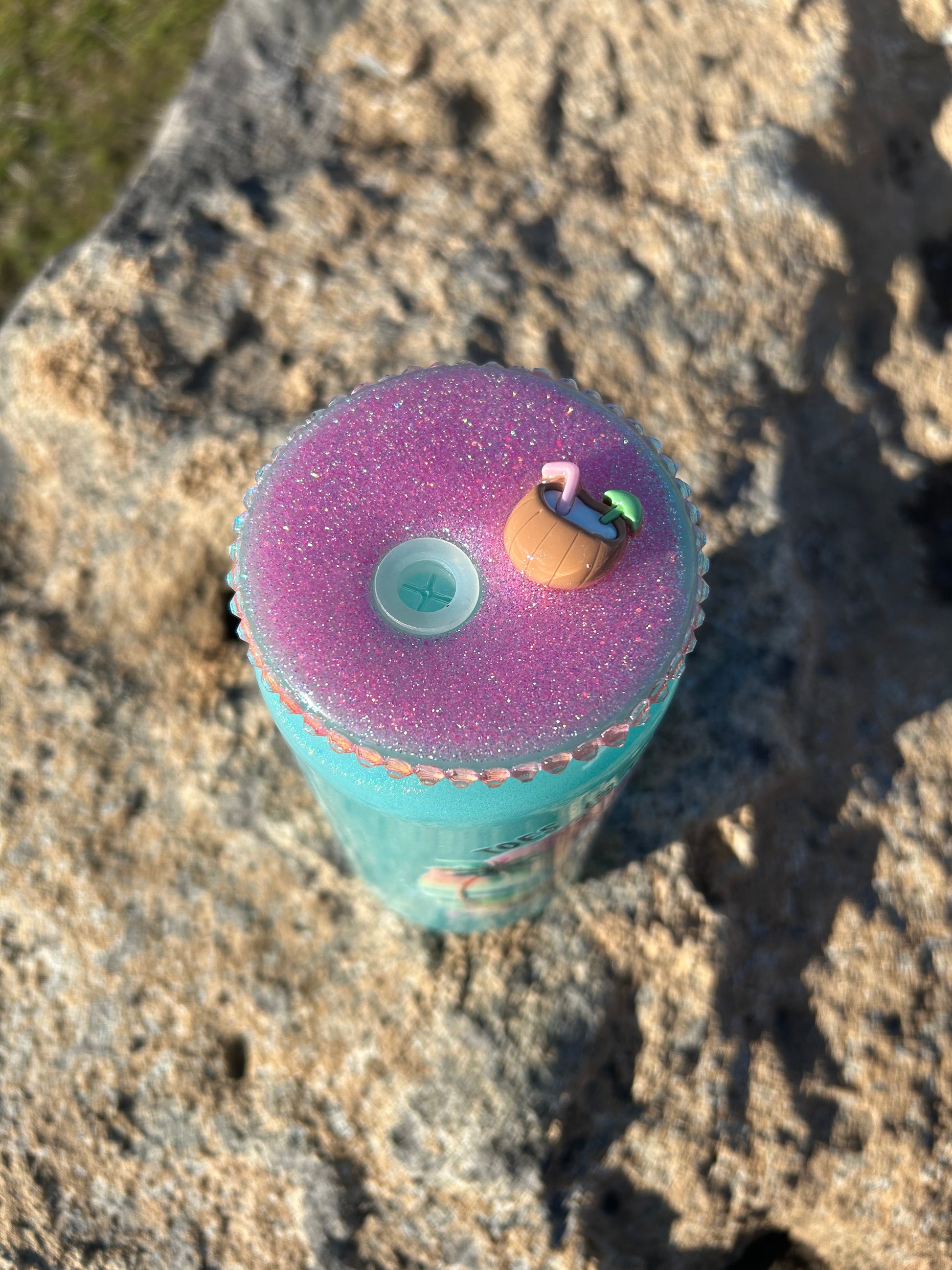 Sip in style with this shimmering 16oz. glass tumbler, complete with a straw and glittered lid adorned with a coconut cocktail topped with an umbrella. The lid is also rhinestone-lined, evoking thoughts of sandy beaches and refreshing ocean waters. Enjoy your iced coffee or chilled cocktails in this one-of-a-kind tumbler.
